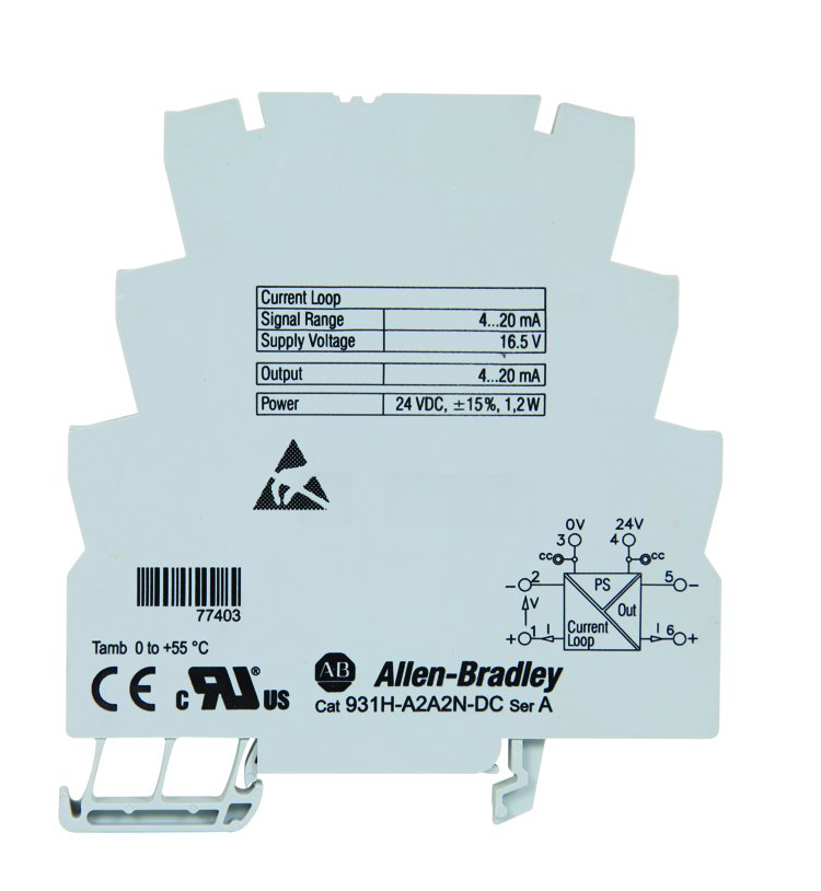 Signal Isolator, 931H, Current to Current, High Density, 6.1 mm Width, 3-Way Isolation, Input Active, Output Active, Supply Voltage 24V DC