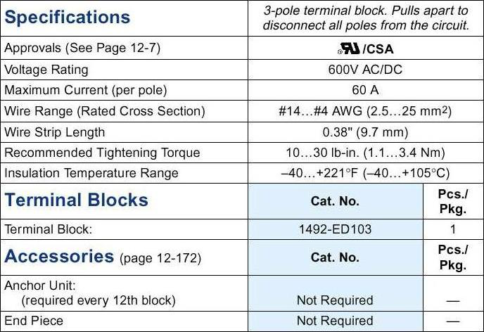 Multiple barrier strip blocks on select blocks let you connect solid or stranded wires, 6 or 12 poles
